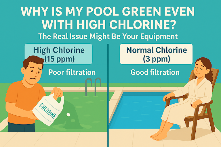 When your pool is green—even with high chlorine—it’s a sign that something in your filtration system isn’t doing its job. Whether it’s a broken filter, not enough run time, or weak circulation, these overlooked issues are often the reason pools stay cloudy long after the algae is dead.
